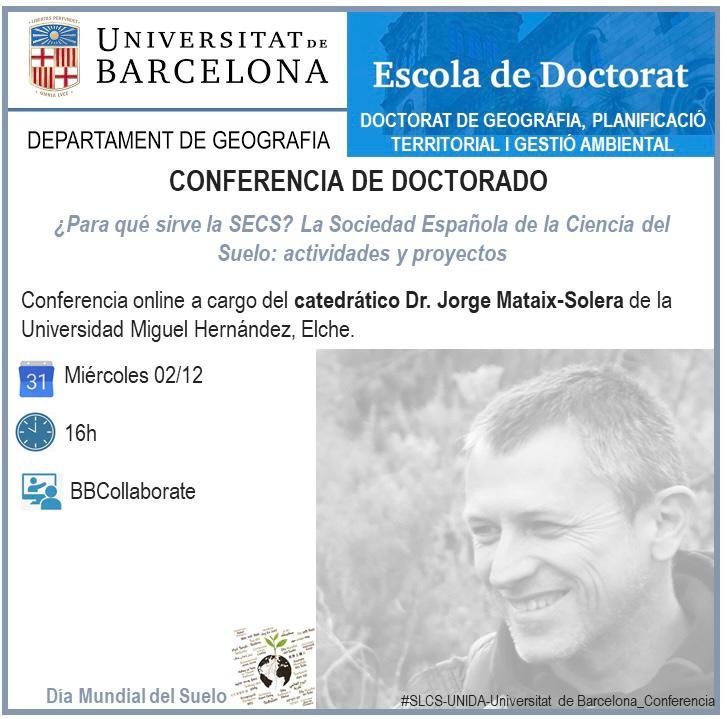 - Conferencia on-line: «¿Para qué sirve la SECS? La Sociedad Española de la Ciencia del Suelo: Actividades y Proyectos«. 2 de diciembre de 2020. Ponente: Jorge Mataix-Solera. Organiza: Xavier Úbeda. Universitat de Barcelona. Enlace al video de la charla